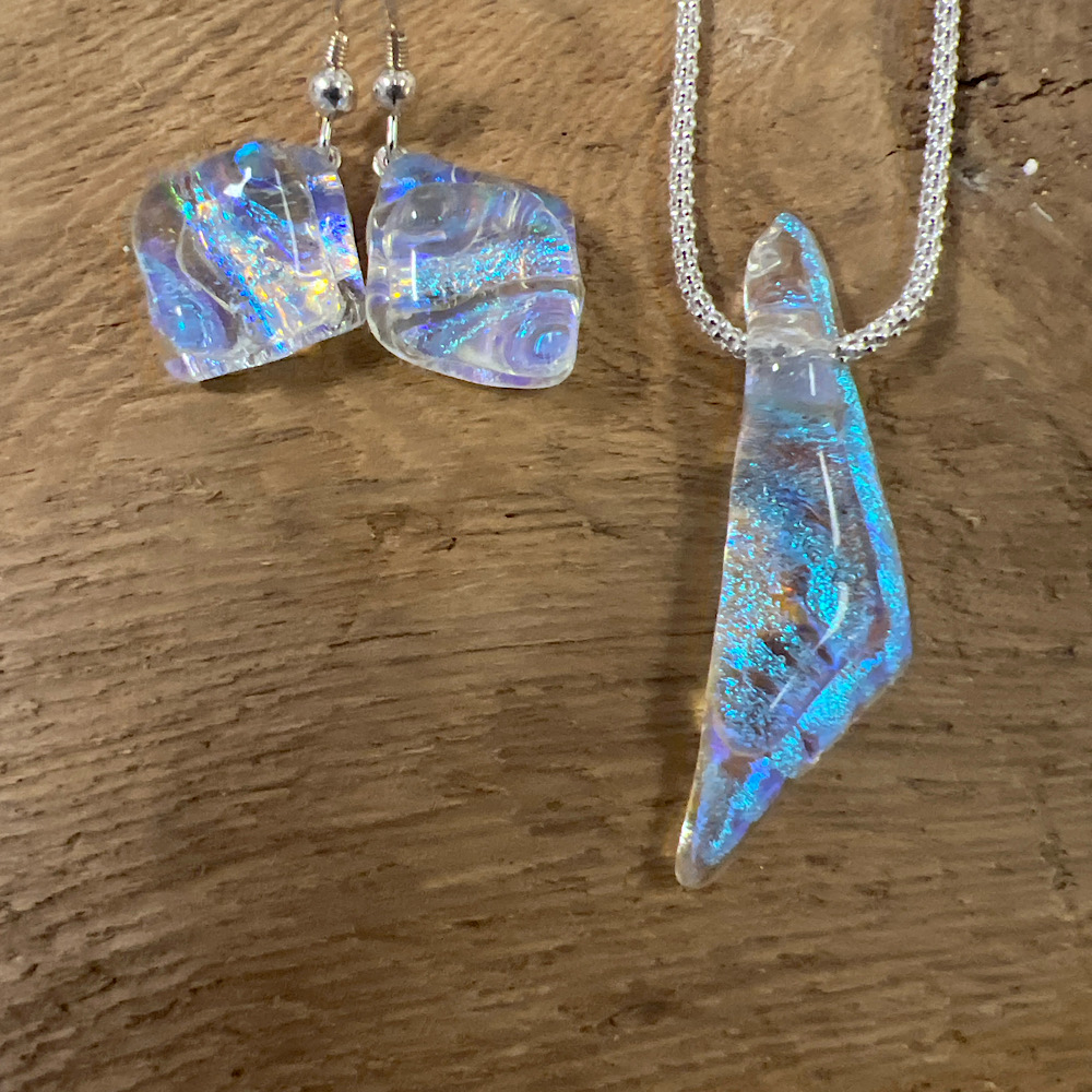Artist Jilly hand cuts, layers, fires, and finishes each piece to create one of a kind fused glass jewelry.